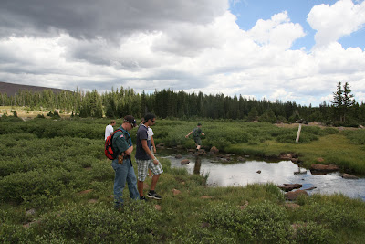 The final day of our trip, and probably the most challenging: If you look closely, you can see a bright spot near the center of this photo. That's from a signal mirror near the trail head. The destination. Elevation: 11,440 feet. Time (and an... [more]