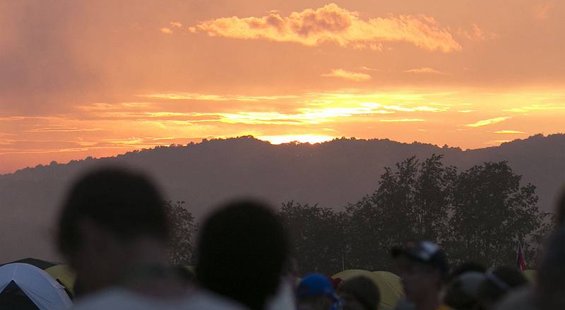 A spectacular fireworks show wrapped up a day of church, games, and fellowship yesterday. A glorious sunset on a great weekend of fun, fellowship and Scouting. This is the view from Basecamp Foxtrot. Nate Feldman, 17, from Old Bridge, New Jersey,... [more]