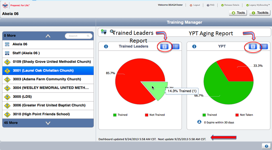 A few enhancements have been made to the MyScouting Tools Training Manager: "YPT Aging Report" has been moved from the Search Training screen and placed on the YPT dashboard for quicker view. A new "Trained Leaders Report" has been developed and an... [more]