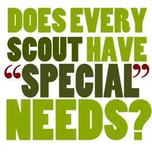 Don't all of our Scouts have special needs? Each has an individual way of seeing things, individual talents and shortcomings, in one sense don't all of us have some special need? The sport of Scouting is discovering how to best deliver the... [more]
