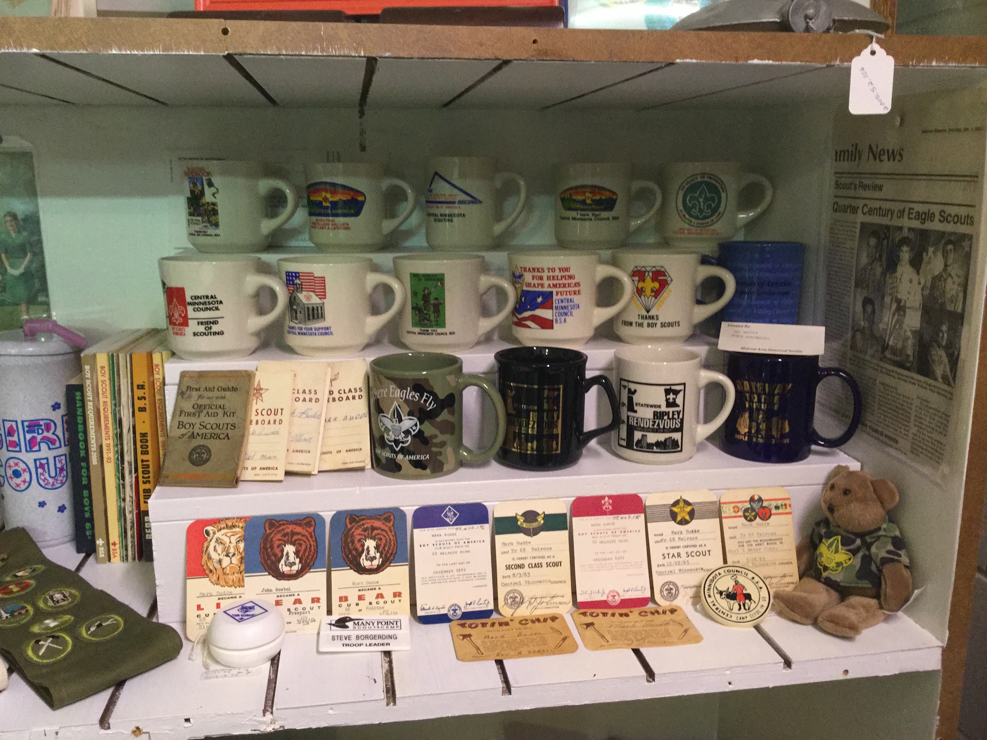 The president of the Melrose Area History Museum and I met at the museum this morning to set up my shelf display and Scouting coffee mugs. We both thought this would be a quick process but the cabinet had other ideas. In order to place the shelves... [more]