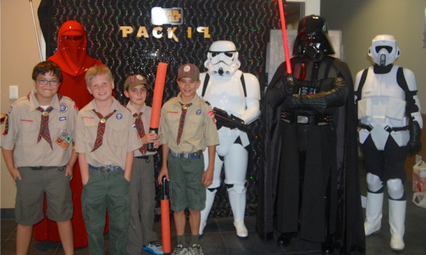 Princess Leia (real identity: Cubmaster Nancy Burke) addresses the crowd at the Pack 19 Blue and Gold Banquet. " Star Wars and Scouting are a perfect combination," Leia/Burke says. "Both Jedis and Cub Scouts share similar values. They each follow a... [more]