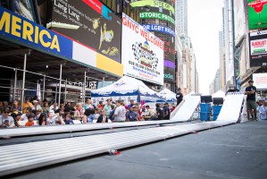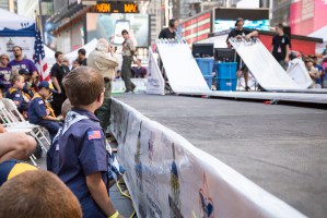 Forget about the neon signs and towering buildings in New York City's Times Square. Last Saturday, the center of attention was a 45-foot pinewood derby racetrack. More than 250 Scouts from as far away as California sent their handmade cars flying... [more]