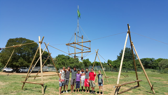 Photo courtesy Shane Anderson 1st Halfway House , a Scout troop in Midrand, South Africa, recently built this tensegrity cube suspended between A-frames. The cube is supsended at 4 points- two underneath, and two at the top of the structure. Photos... [more]
