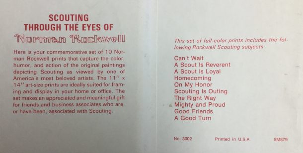 The Norman Rockwell reprint set I wrote about in the last post is not the only Scouting print set I own. I also have The New Spirit Of Scouting set featuring ten paintings of Joseph Csatari. These prints are also 11ââ¬Â³ x 17ââ¬Â³ and are... [more]