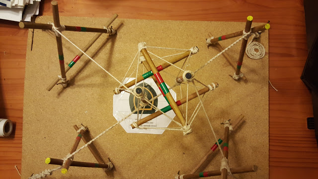Photo courtesy Shane Anderson 1st Halfway House , a Scout troop in Midrand, South Africa, recently built this tensegrity cube suspended between A-frames. The cube is supsended at 4 points- two underneath, and two at the top of the structure. Photos... [more]