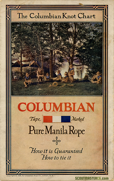 In 1925 the Columbian Rope Company published a brochure with images of impressive displays of Scouting knots to advertise their tape marked pure manilla rope. Two images feature a large knot board made by Troop 4 of Columbus Ohio. I wonder if that... [more]